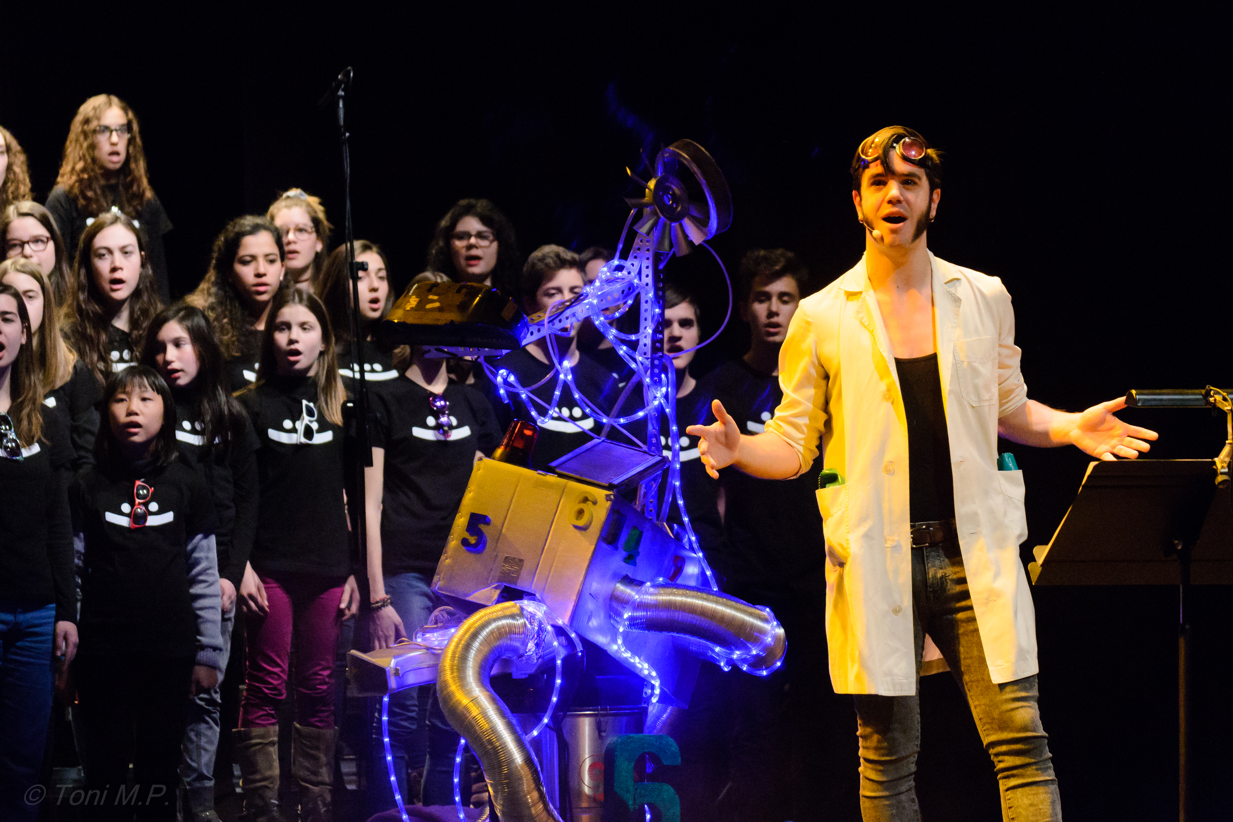 Cantaires de les corals del SCIC Arnau Tordera I, compositor Direcció escènica: Antoni Font-Mir Direcció musical: Oriol Castanyer Des de fa més de 50 anys, el Secretariat de Corals Infantils de Catalunya organitza cada any una trobada per a les seves corals federades. Amb formats i repertoris diferents, cada curs, les corals del SCIC s’agrupen per cantar junts. Enguany, per la 52a Trobada, presentem La Màquina del temps, una cantata fresca i divertida; un viatge per la història que ens porta a passar per les sonoritats i estils més diversos, tot plegat amb el segell de singularitat i qualitat a parts iguals del seu compositor (i protagonista) Arnau Tordera I, autor de la cantata amb la col.laboració d’Antoni Font-Mir en la dramatúrgia i amb més de 250 cantaires a l'escenari. Recomanat a partir de 5 anys Fotògraf: Toni Márquez